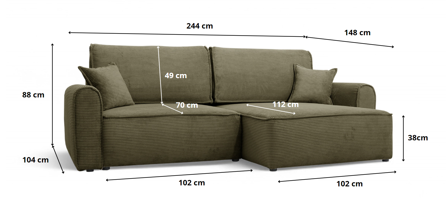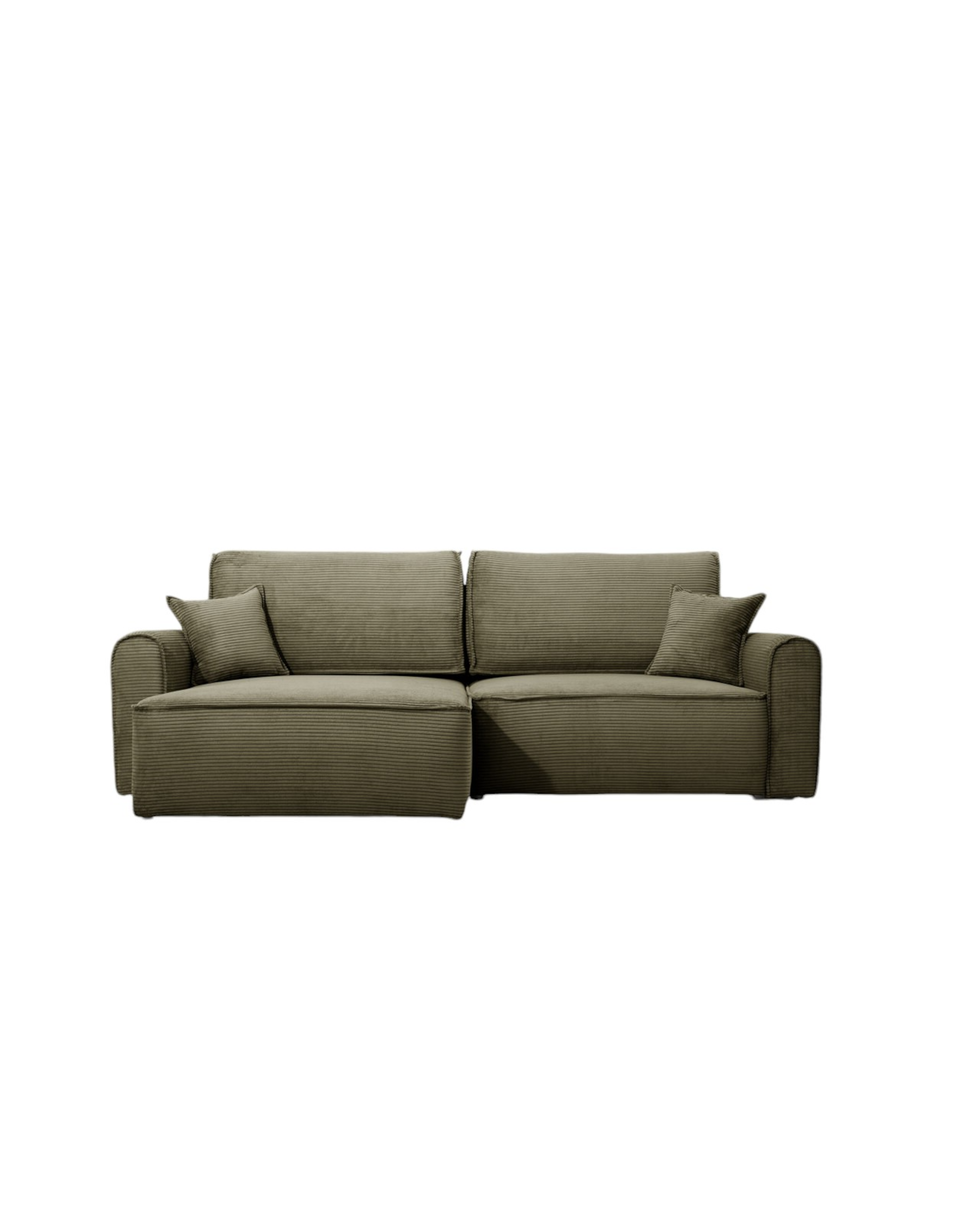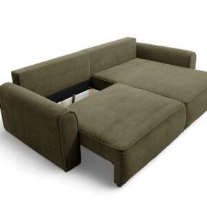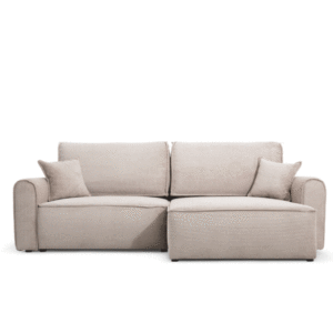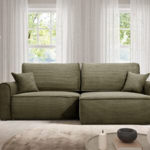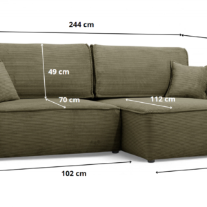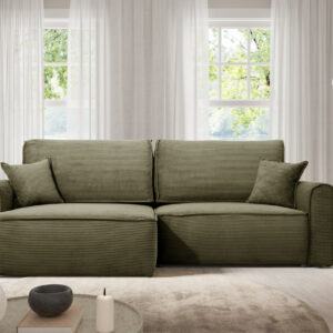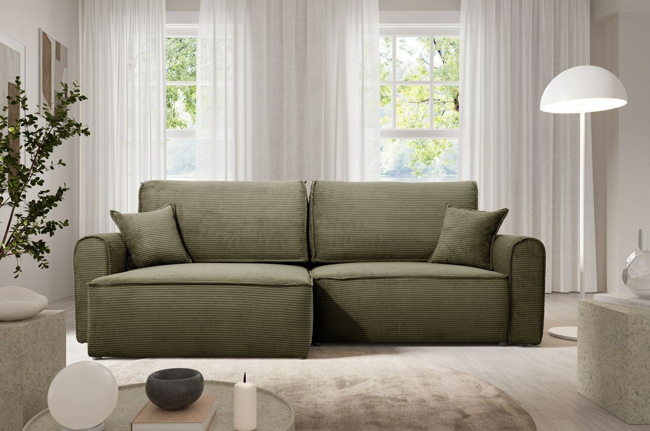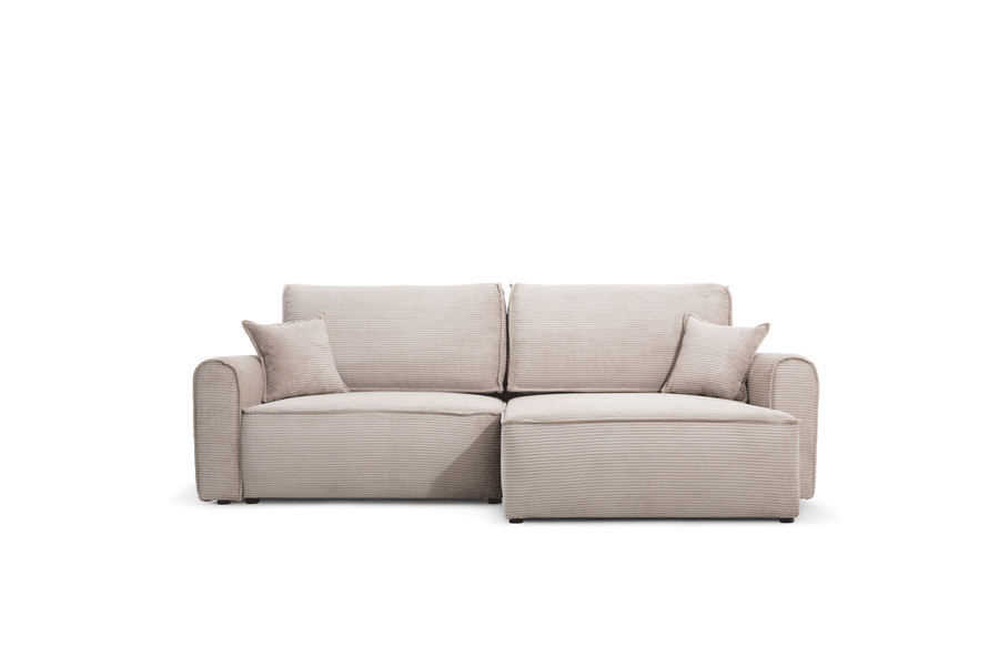 Die ergonomische Sitzfläche und die weichen Kissen sorgen für hohen Komfort, während die solide Konstruktion Langlebigkeit garantiert. Das universelle Design macht dieses Cord-Ecksofa passend für verschiedene Einrichtungsstile. Die schnelle und einfache Montage ermöglicht eine unkomplizierte Aufstellung am gewünschten Ort.