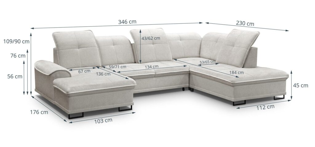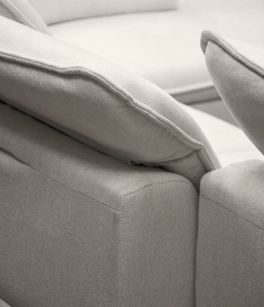 - Rücken echt bezogen – dadurch kann das Sofa frei im Raum stehen und sich mitten im Wohnzimmer präsentieren