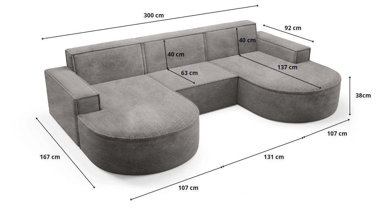 - Das Ecksofa verfügt über keine Schlaffunktion.