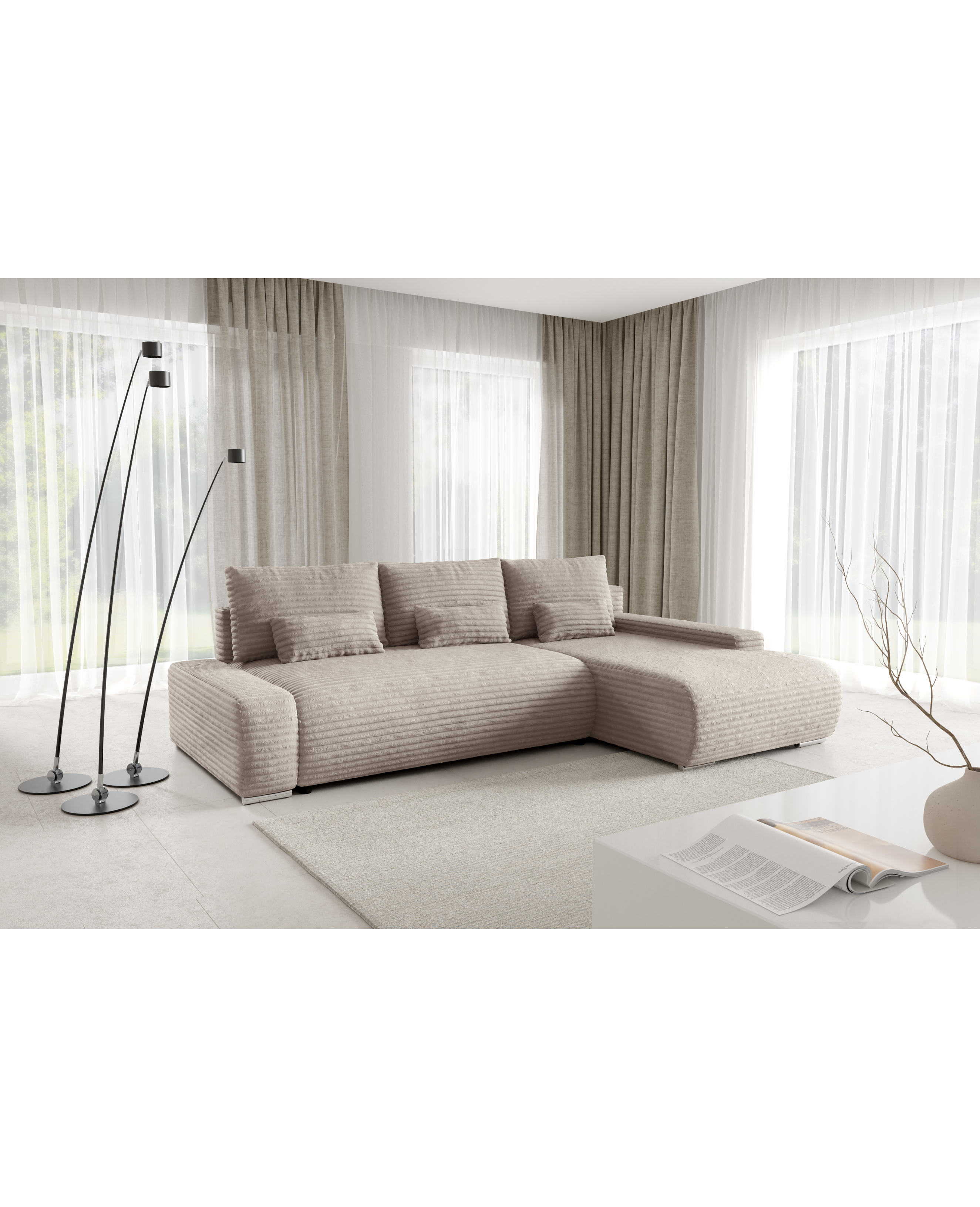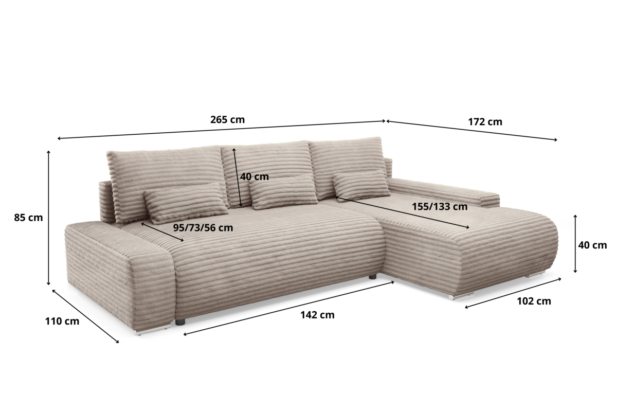 Ecksofa ROLLY L mit Bettkasten, Cordstoff