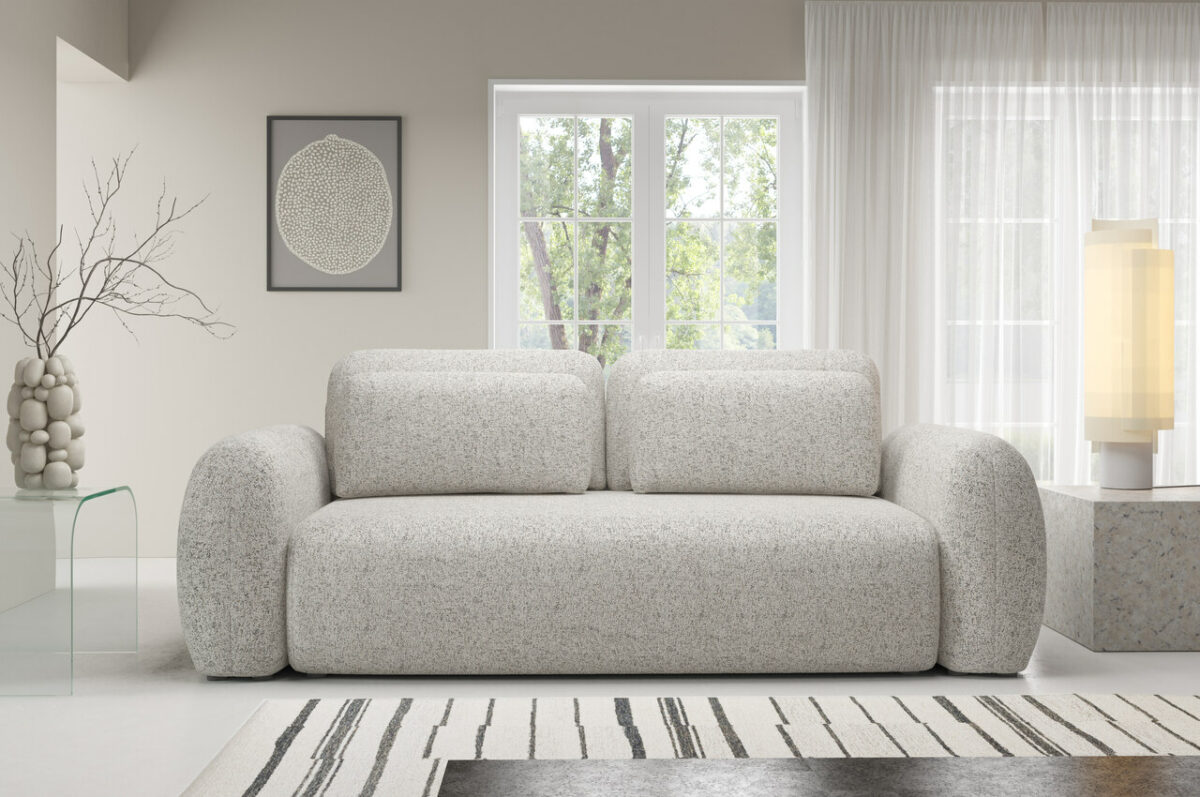 Das moderne, abgerundete Design, inspiriert vom Trend des Soft Minimalism, sorgt dafür, dass das Sofa Falco perfekt mit Einrichtungen im modernen, Japandi- oder skandinavischen Stil harmoniert. Sein universeller Charakter und die reiche Farbpalette ermöglichen eine ideale Anpassung sowohl an großzügige Apartments in Warschau als auch an gemütliche Wohnungen in Krakau, Breslau oder Danzig.