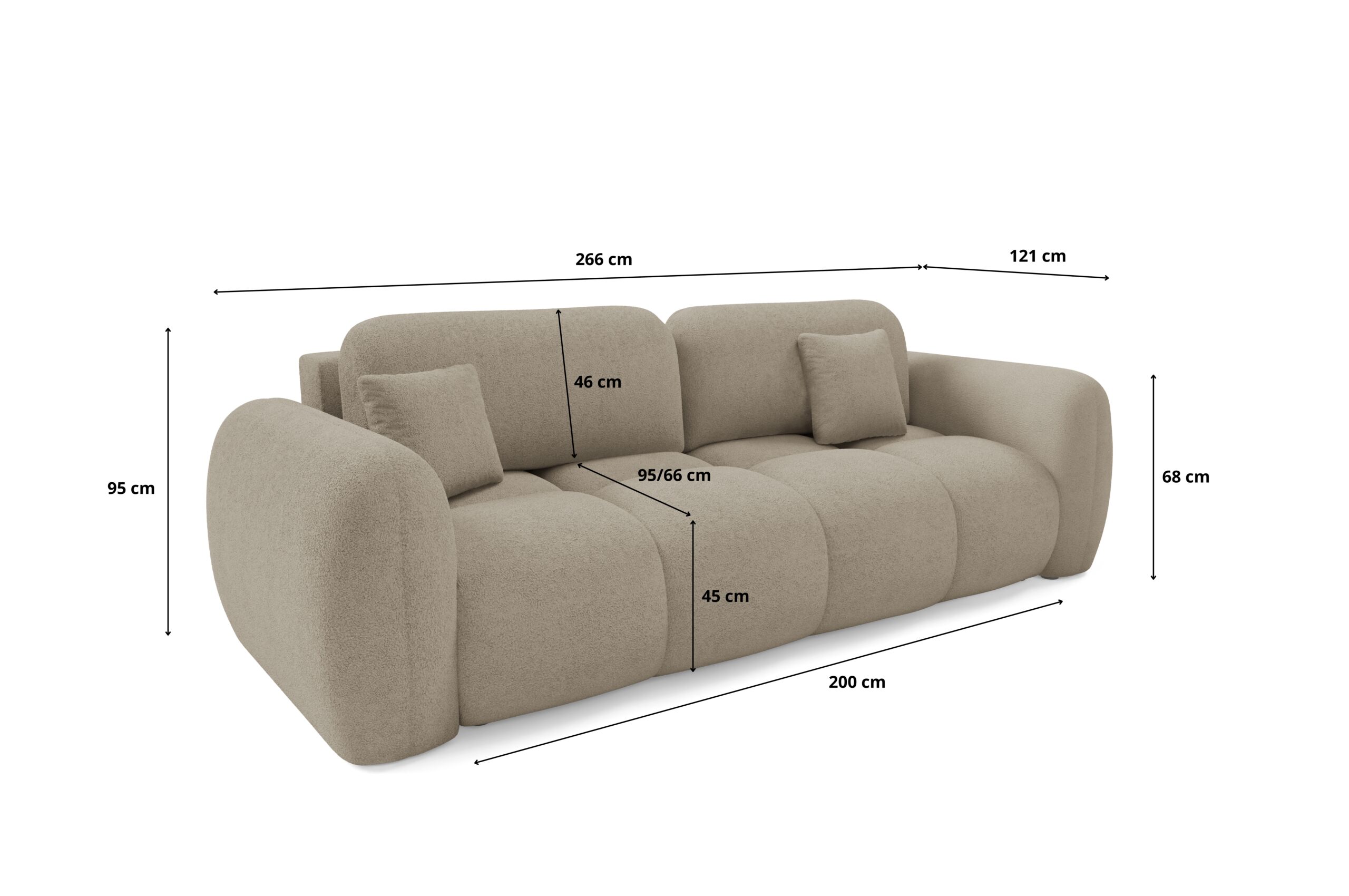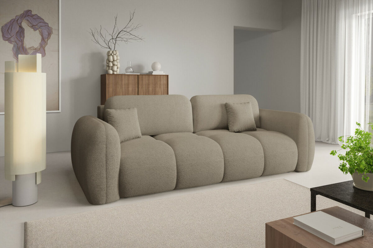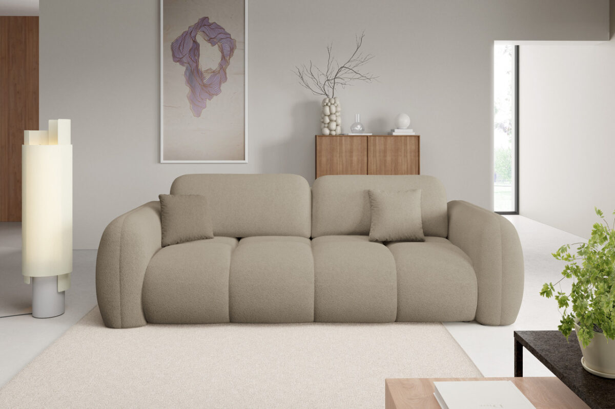 Sofa Pillow ist ein modernes, ausziehbares Sofa mit abgerundeten Formen, das Design, Komfort und Funktionalität perfekt vereint. Seine gerundete Form verleiht dem Innenraum Weichheit, Gemütlichkeit und Eleganz und fügt sich in die neuesten Einrichtungstrends ein, die von Instagram und dem Stil des Soft Minimalism inspiriert sind. Sofa Pillow ist ein Möbelstück, das nicht nur durch sein Aussehen begeistert, sondern auch durch seinen Komfort – eine ausgezeichnete Wahl für Menschen, die Ästhetik und Qualität im täglichen Gebrauch schätzen.