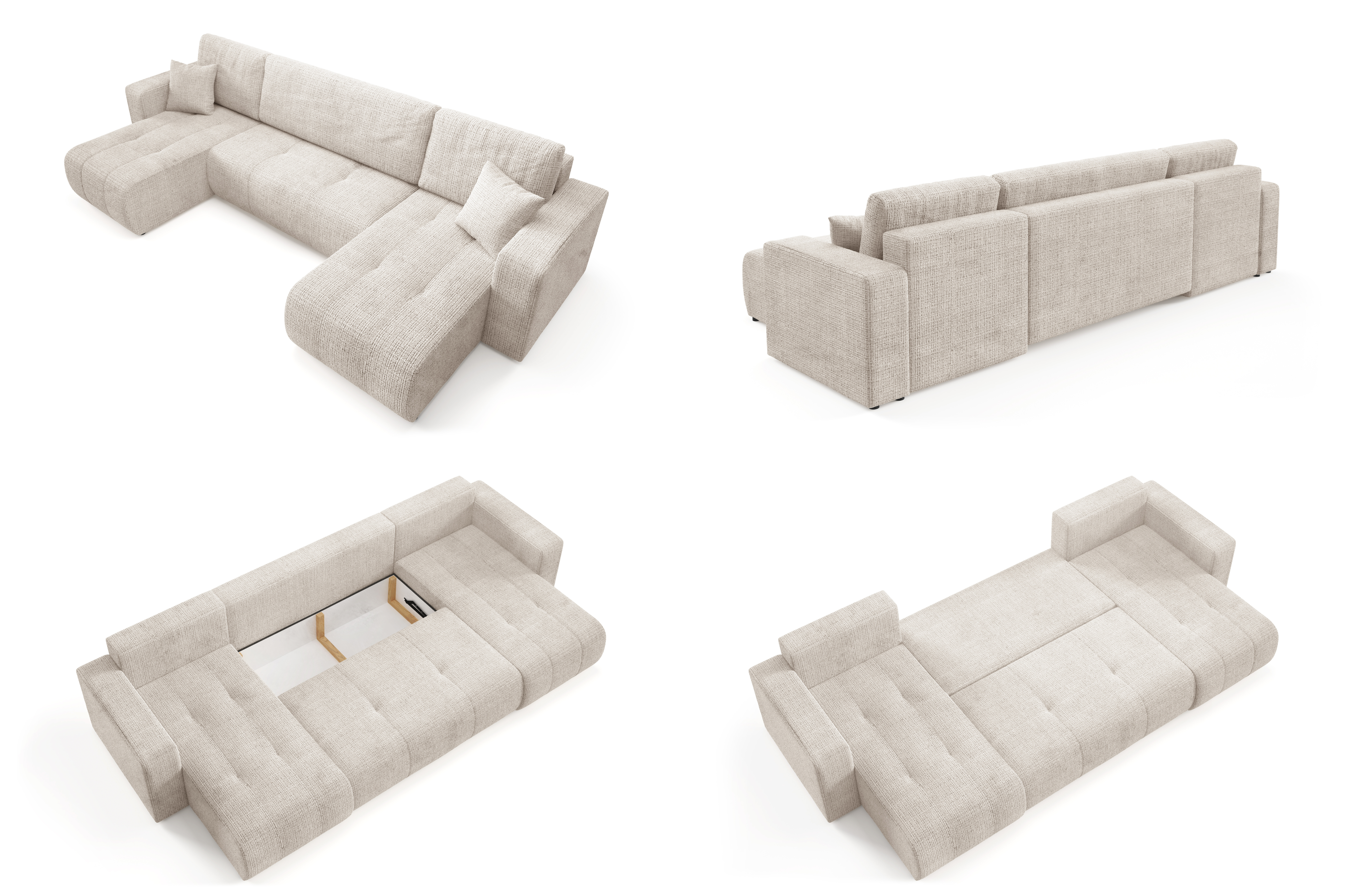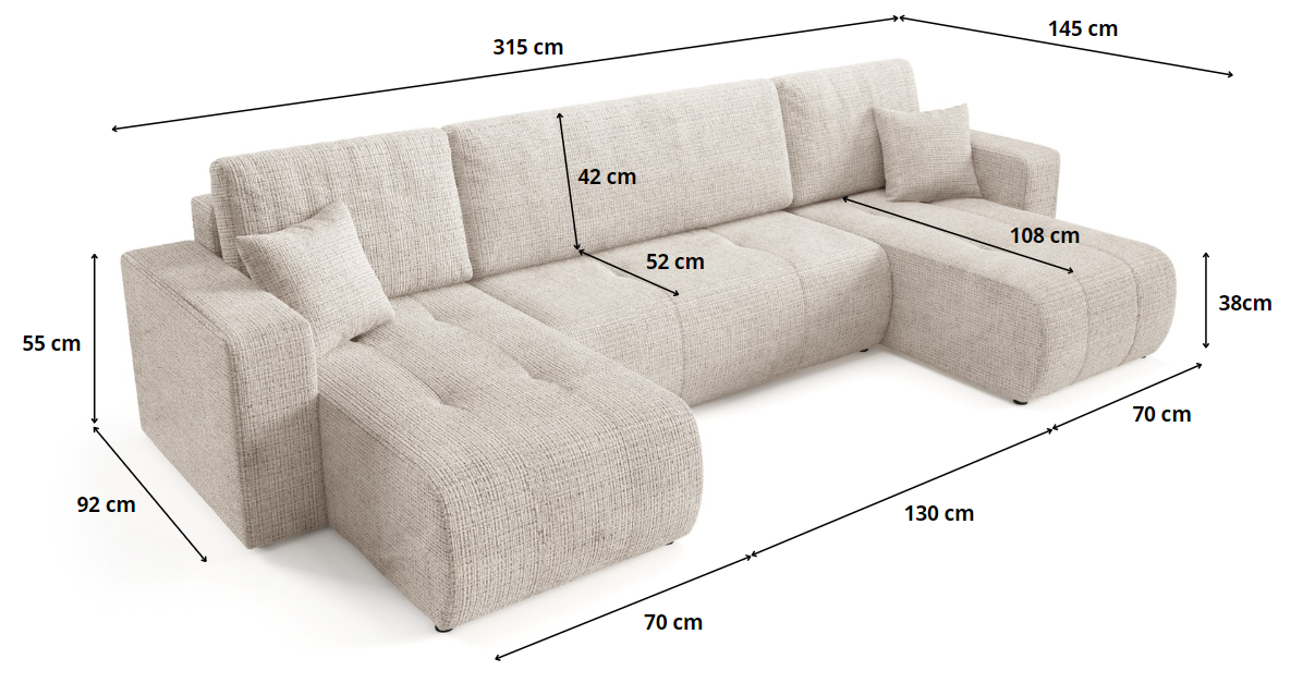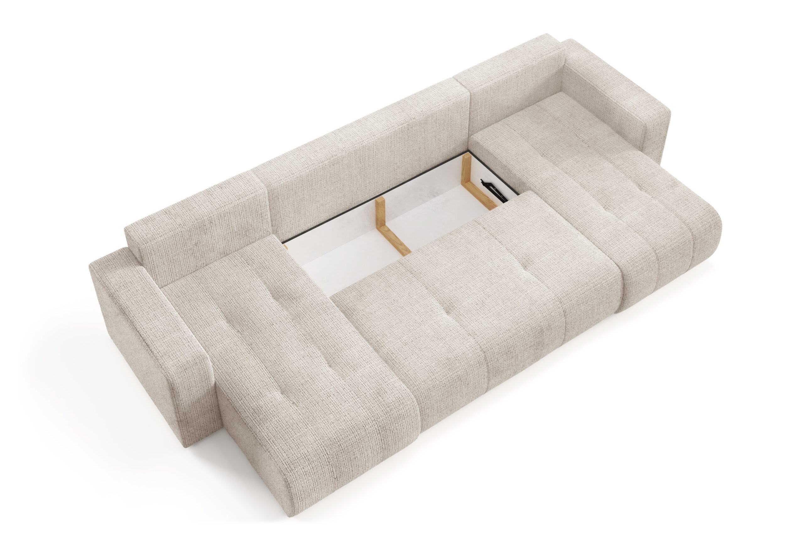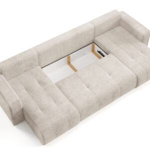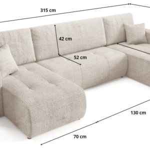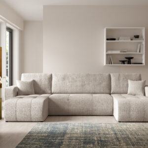 Entdecke Komfort und Funktionalität mit dem Ecksofa VERITA U, ideal für jedes Wohnzimmer. Dieses ausziehbare Ecksofa bietet eine komfortable Schlaffunktion und eignet sich somit perfekt für den täglichen Gebrauch sowie für Übernachtungsgäste. Zusätzlich sorgt das Ecksofa mit Bettkasten für praktischen Stauraum und hilft, Ordnung im Zuhause zu halten. Das Möbel ist aus Chenille-Stoff gefertigt.