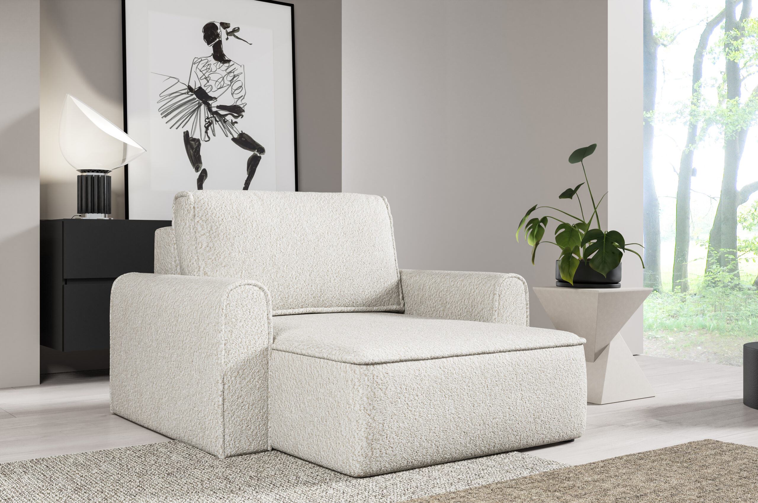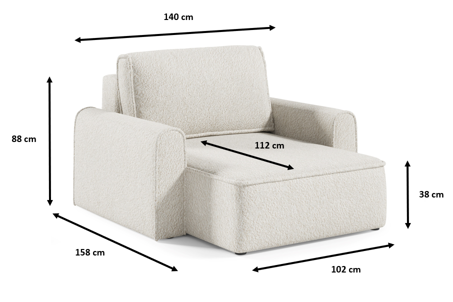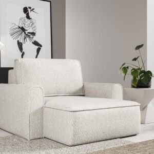 - Tył obity tym samym materiałem – dzięki temu fotel może stać wolno i godnie prezentować się na środku salonu