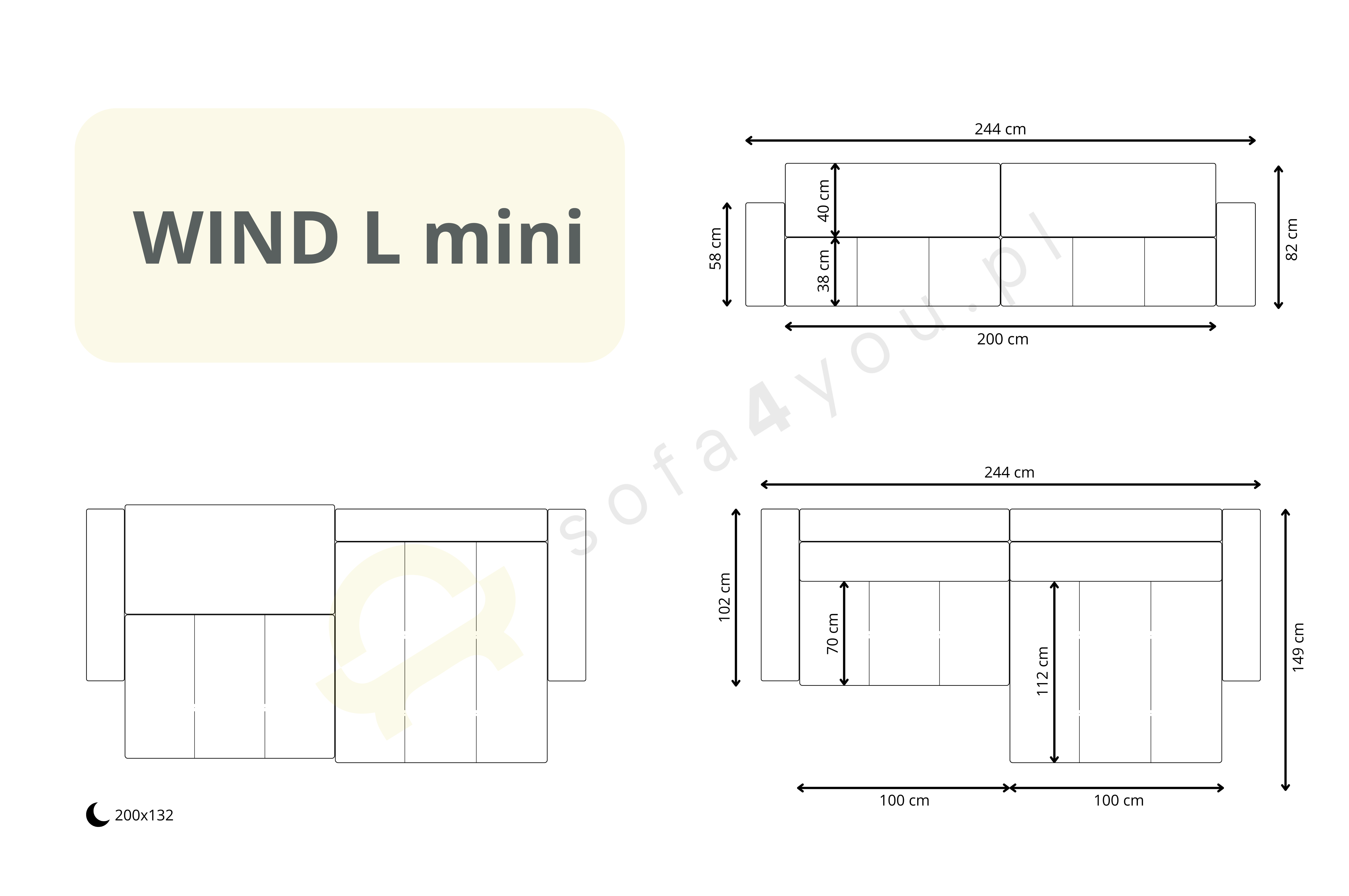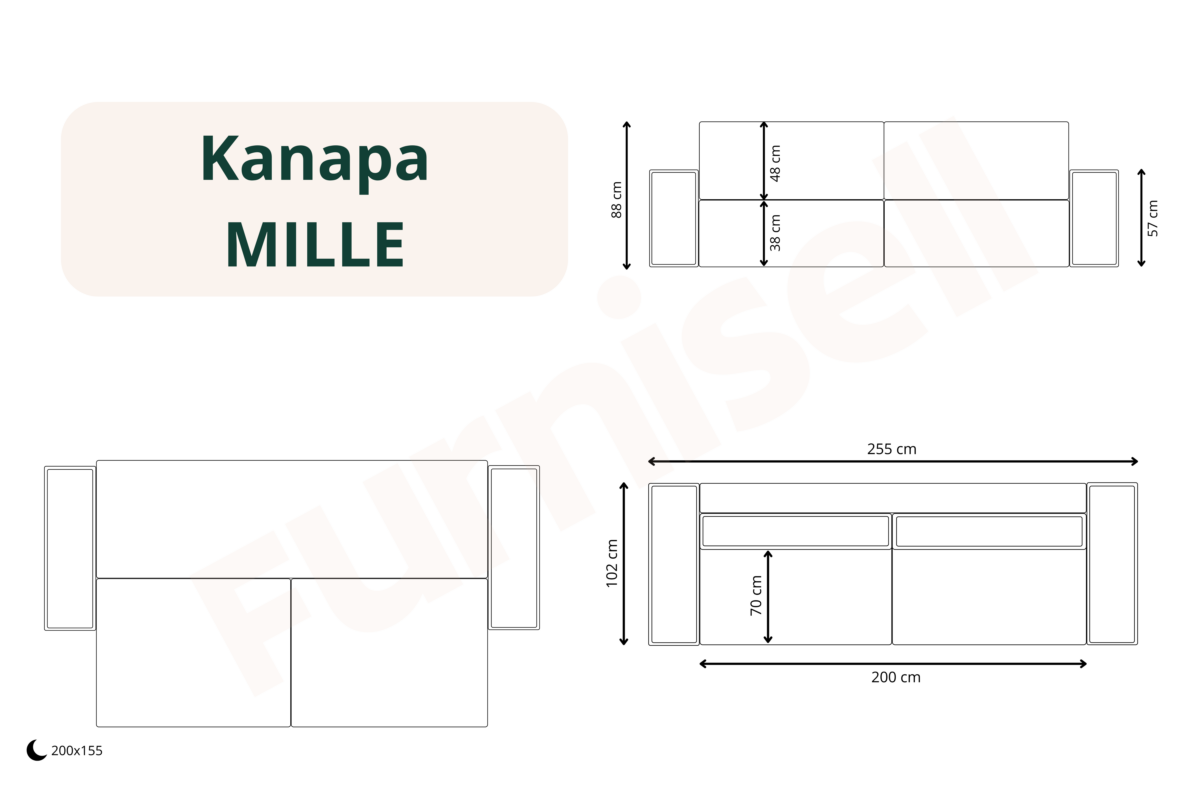 - Funkcja spania – powierzchnia spania 200 x 155 cm zapewni komfortowy sen nawet dla dwóch osób