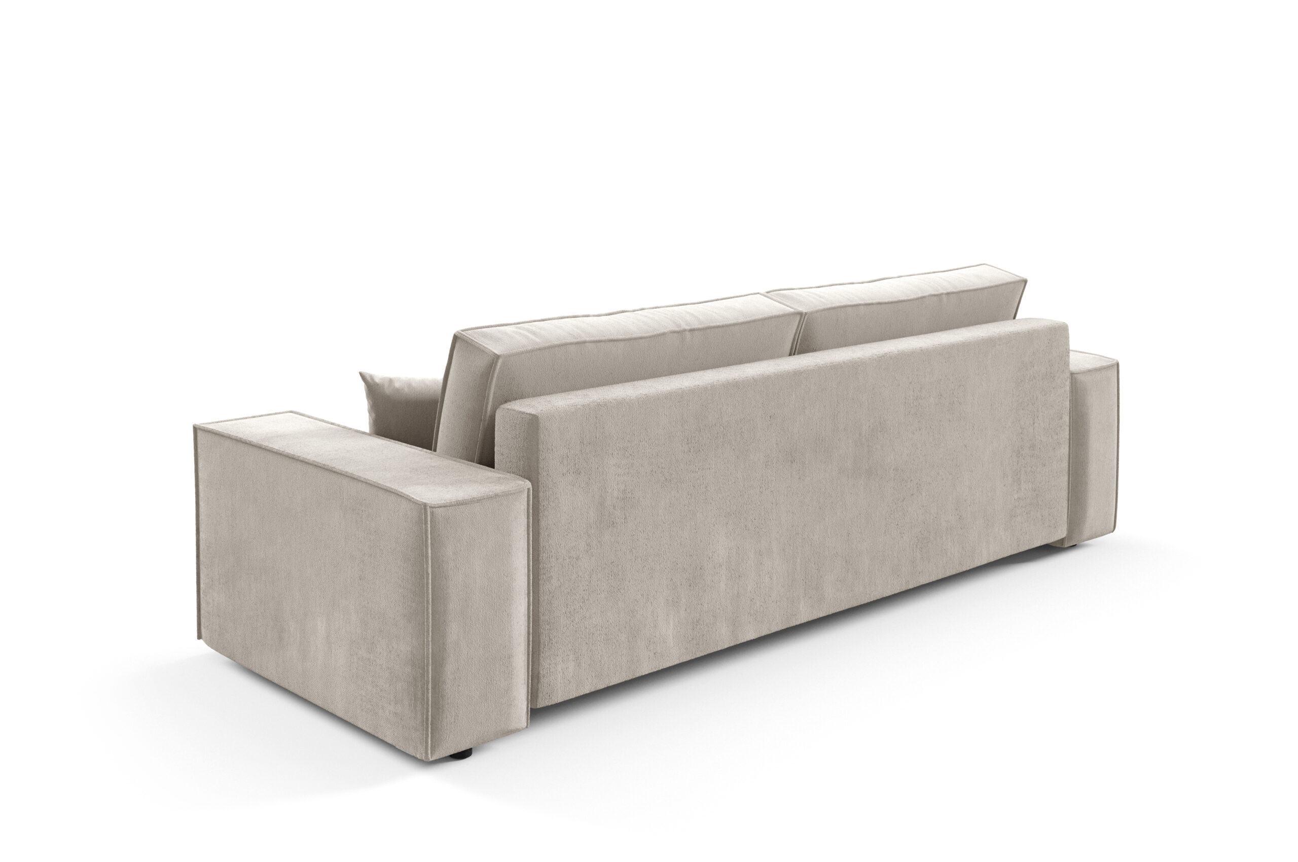 - Tył obity tym samym materiałem – dzięki temu sofa może stać wolno i godnie prezentować się na środku salonu