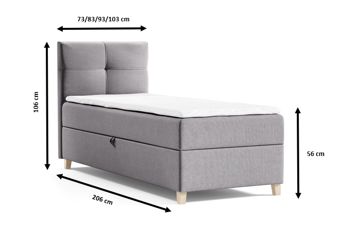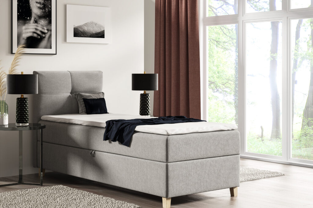 Łóżko CANDEE mini to nowoczesne łóżko kontynentalne, wyposażone w sprężyny bonell o średniej twardości. Łóżko swoim designem wpasuję się we wnętrze każdej sypialni lub pokoju młodzieżowego.