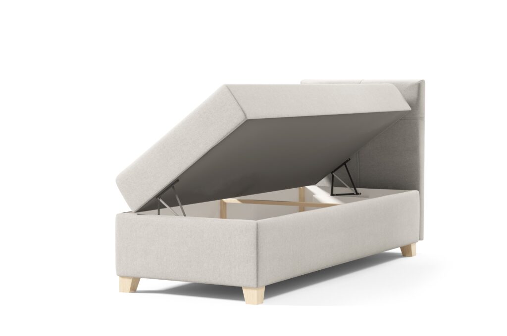 - Pojemniki na pościel podnoszony dzięki automatom – z łatwością podniesiesz i schowasz w nich wszystko