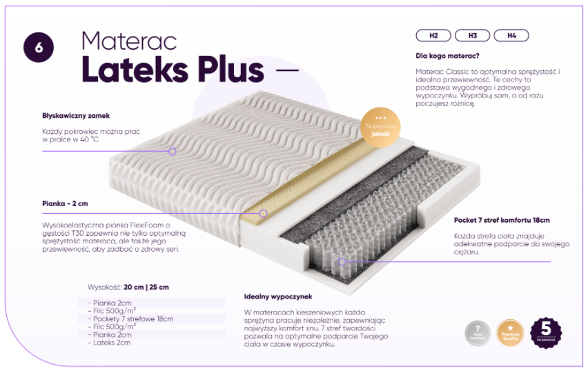 Materac kieszeniowy LATEKS PLUS: