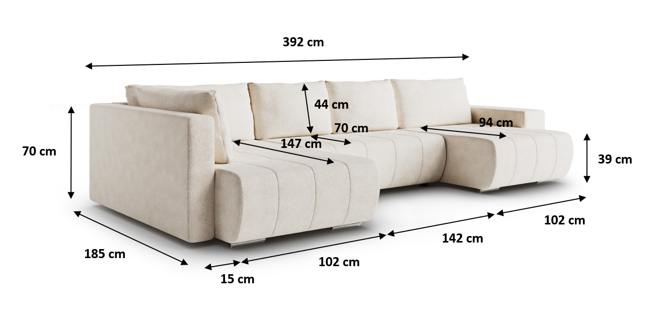 - Funkcja spania – powierzchnia spania 340 x 140 cm zapewni komfortowy sen nawet dla dwóch osób