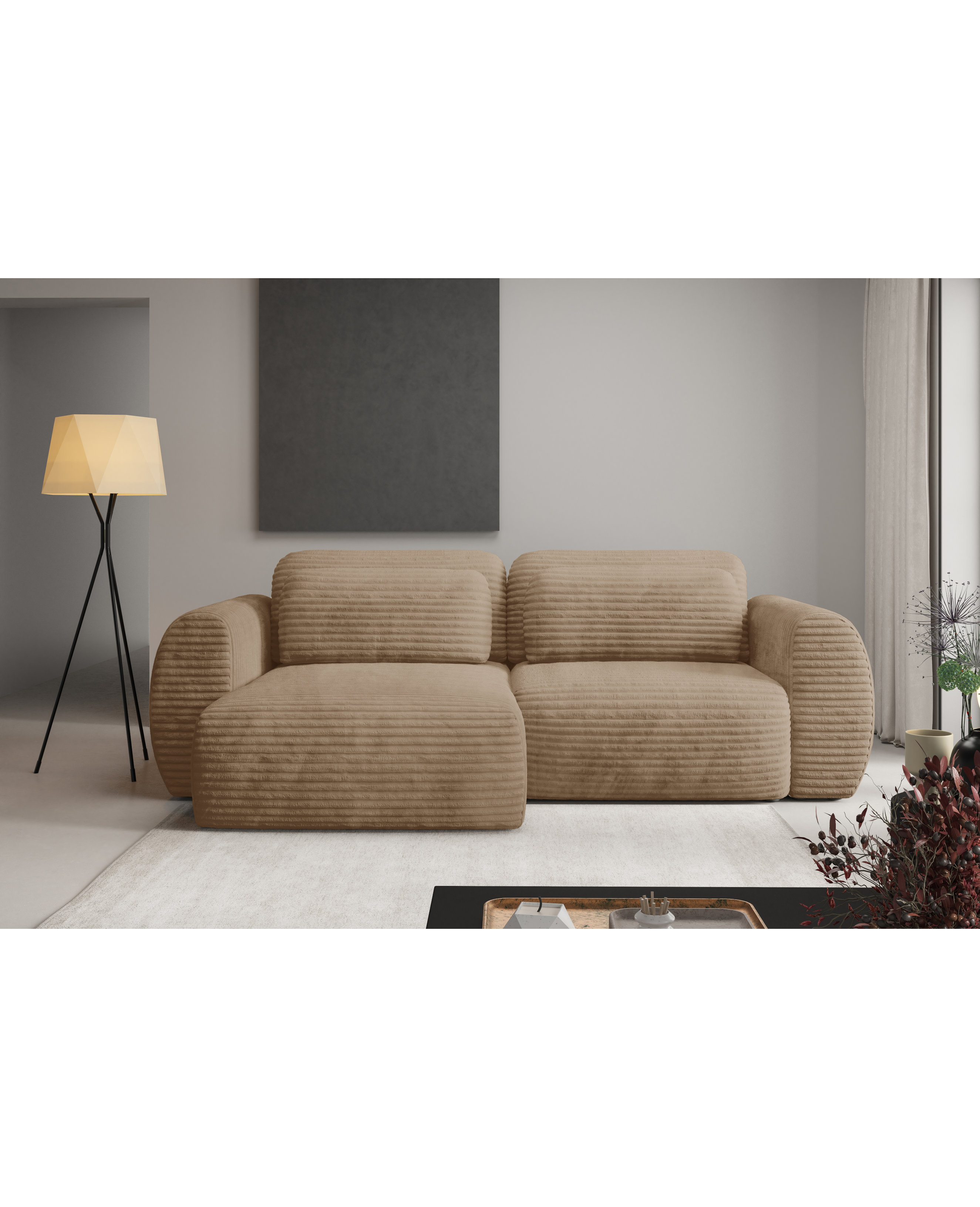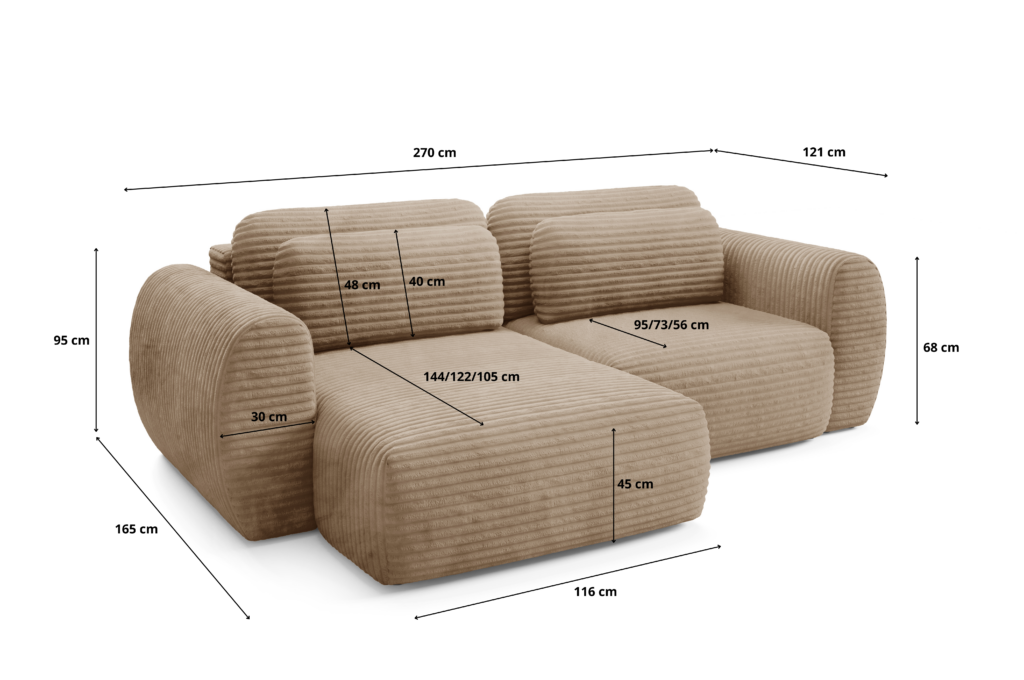 Model CLOUD L Premium dostępny jest w wersji premium, tapicerowany tkaniną Ambience, wyróżniającą się elegancką strukturą i miękkim wykończeniem. Bogata paleta kolorów oraz możliwość wyboru własnego materiału sprawiają, że narożnik z funkcją spania i pojemnikiem na pościel idealnie dopasuje się do stylu Twojego wnętrza. Solidna konstrukcja, przemyślany design i wysokiej jakości wykonanie czynią narożnik CLOUD L Premium najlepszym wyborem dla osób, które szukają połączenia elegancji, komfortu i funkcjonalności w jednym meblu.
