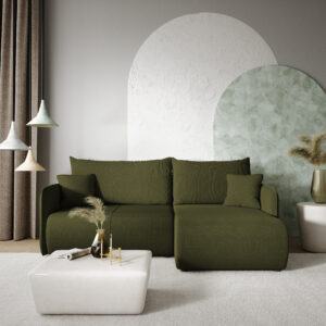 Zastosowana tkanina hydrofobowa Curio to materiał nowej generacji – niezwykle miękka w dotyku, a przy tym odporna na wchłanianie płynów i łatwa w czyszczeniu. Dzięki temu narożnik nie tylko prezentuje się wyjątkowo, ale również świetnie sprawdza się w codziennym użytkowaniu. Forest L oferuje dużą powierzchnię spania i praktyczny pojemnik na pościel, który pozwala zachować porządek bez kompromisów.