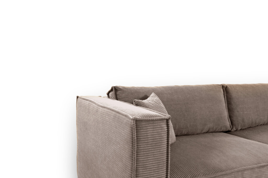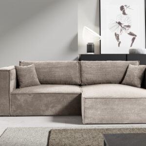 Ergonomiczne siedzisko i miękkie poduszki zapewniają komfort, a solidna konstrukcja gwarantuje trwałość. Uniwersalny design sprawia, że ten narożnik sztruksowy pasuje do różnych stylów wnętrz. Szybki i prosty montaż umożliwia łatwe ustawienie narożnika w wybranym miejscu.