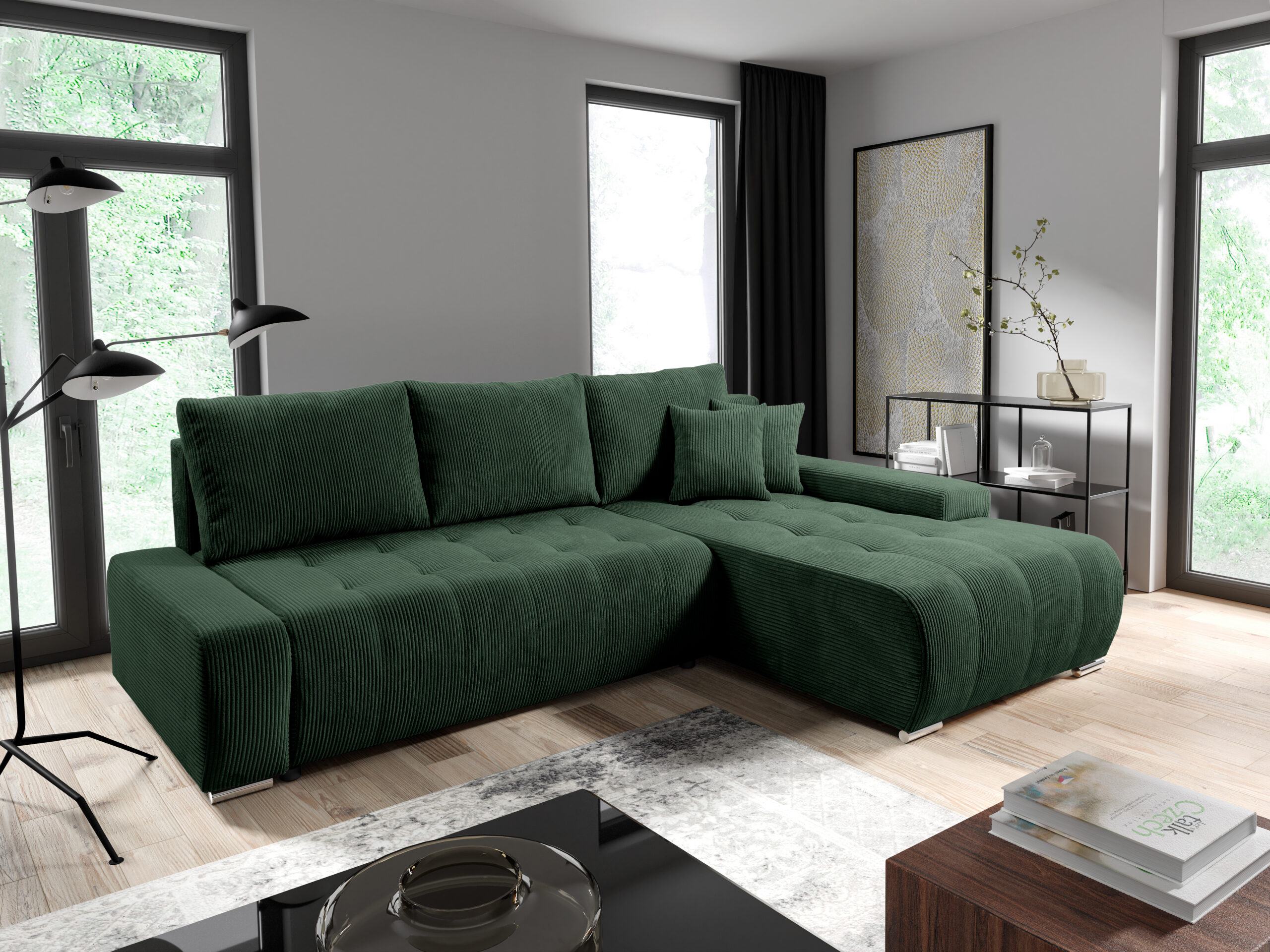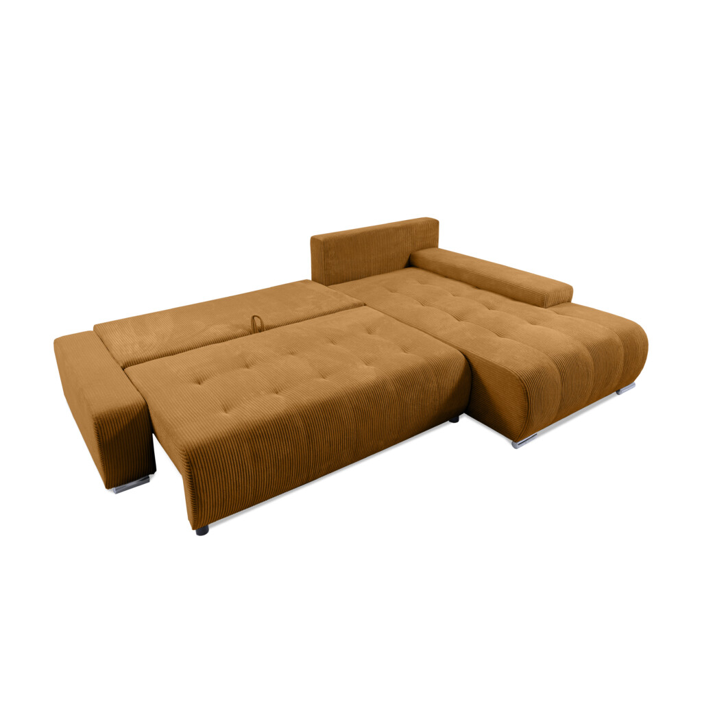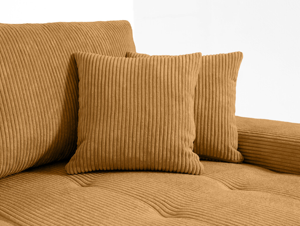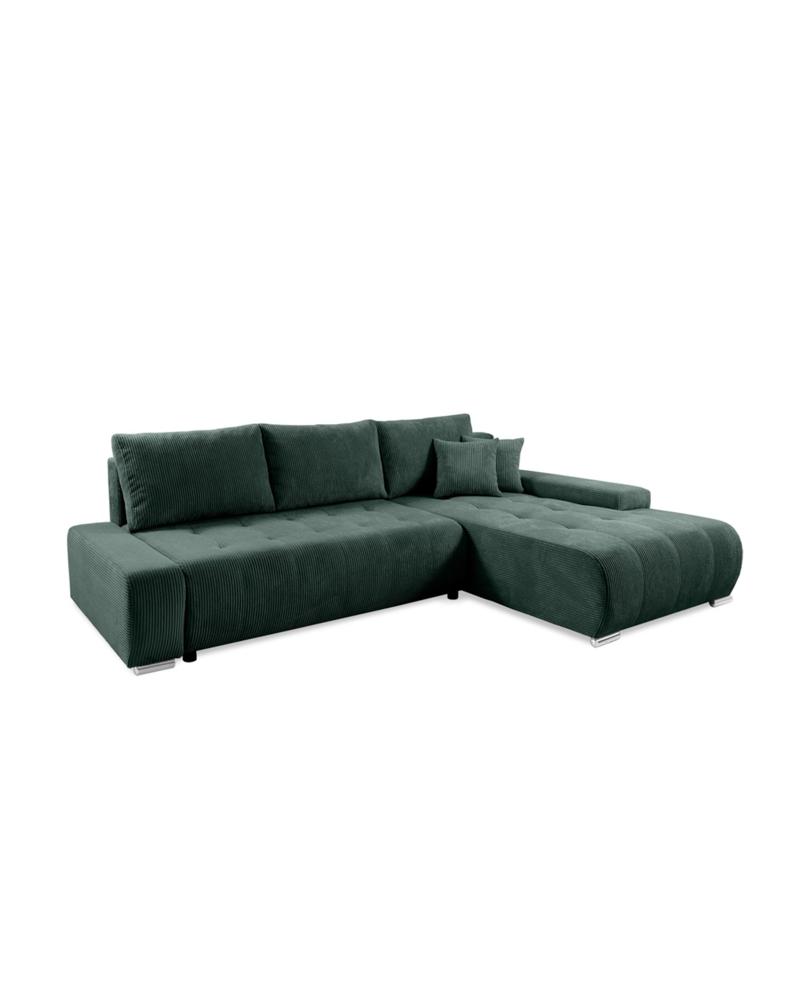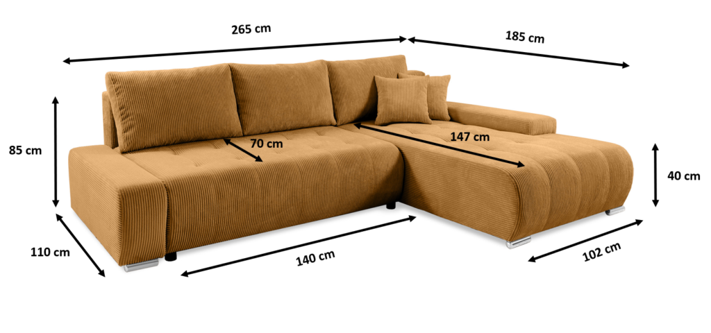 - Tył obity tym samym materiałem – dzięki temu narożnik może stać wolno i godnie prezentować się na środku salonu.