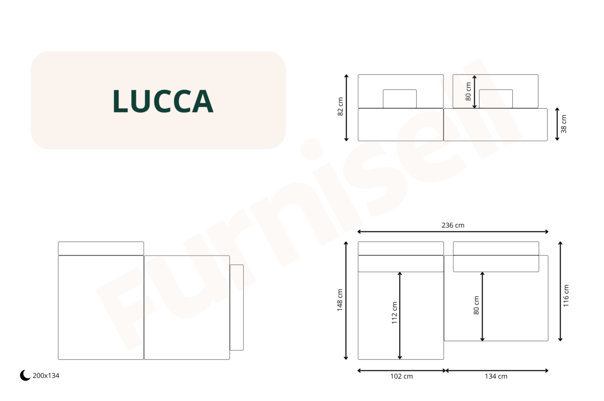 - Funkcja spania – powierzchnia spania 200 x 134 cm zapewni komfortowy sen nawet dla dwóch osób