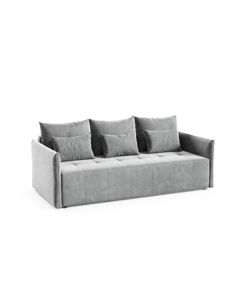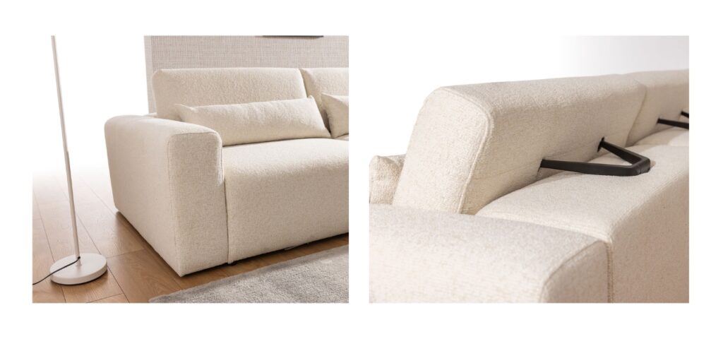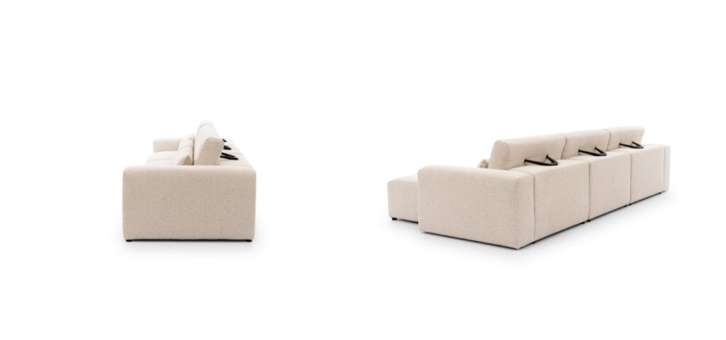- Tył obity tym samym materiałem – dzięki temu mebel może stać wolno i godnie prezentować się na środku salonu.