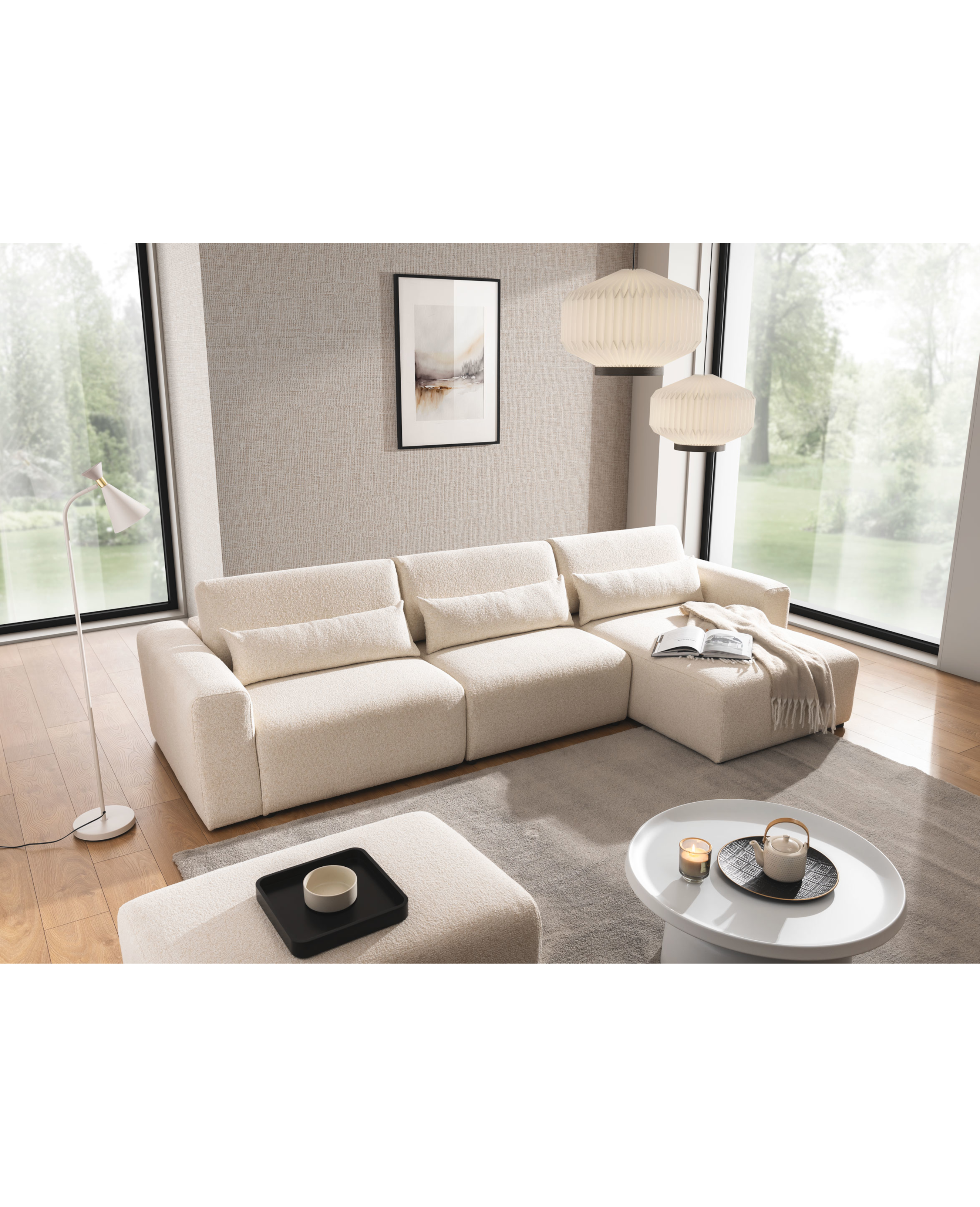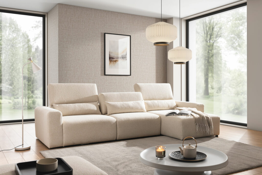 Przestronna, wygodna kolekcja systemów modułowych doskonale sprawdza się jako rodzinne centrum rozrywki i jest niezastąpiona podczas odwiedzin gości. Siedzisko i oparcia wypełnione są wysokoelastyczną pianką poliuretanową najwyższej klasy, dzięki czemu meble są wyjątkowo komfortowe.