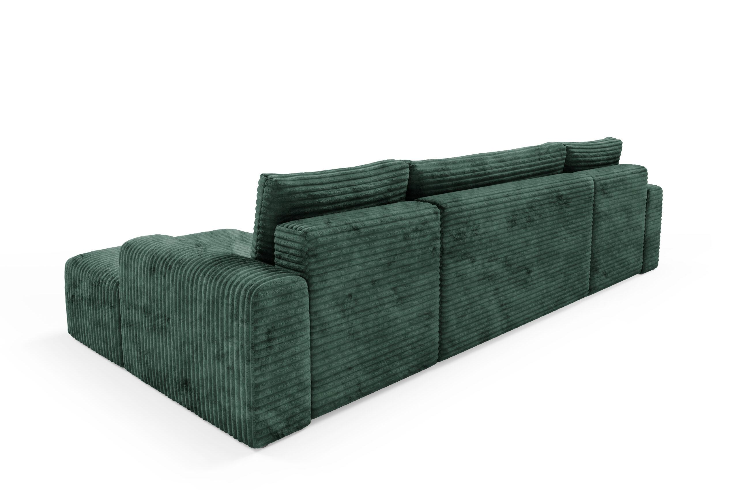 - Tył obity tym samym materiałem – dzięki temu narożnik może stać wolno i godnie prezentować się na środku salonu